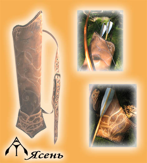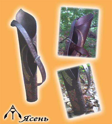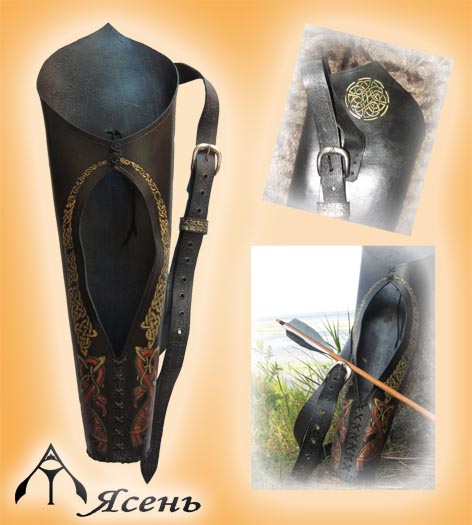 Колчан "Кельтский вождь" - рельефные кельтские узоры и необычная форма придают колчану загадочный мифический вид. Крепление тройным ремнем.