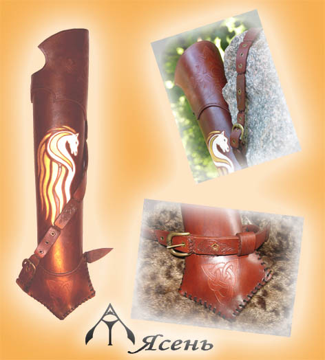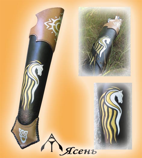 Колчан "Кельтский вождь" - рельефные кельтские узоры и необычная форма придают колчану загадочный мифический вид. Крепление тройным ремнем.